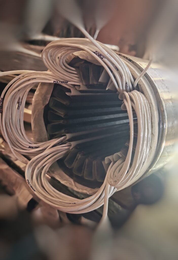 Si le stator présente des enroulements défectueux, nous procédons à un rembobinage complet en fil de cuivre isolé PVC de haute qualité, respectant les spécifications d’origine.